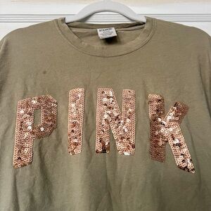Victoria’s Secret PINK Green Sequins Bling Logo Long Sleeve Tee | M