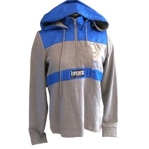 Victoria's Secret PINK Grey w/ Blue Logo Anorak Campus Pullover Hoodie M