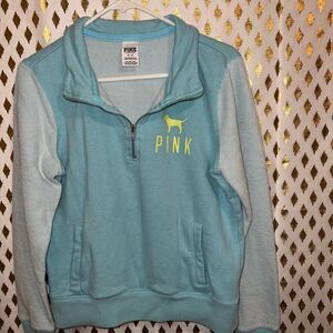 Victoria's Secret PINK Half-Zip Light Blue Terrycloth Pull-Over size M