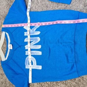 Victoria's Secret PINK Heathered Royal Blue White Logo Fleece Sweatshirt-XS