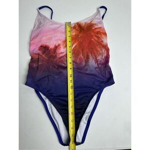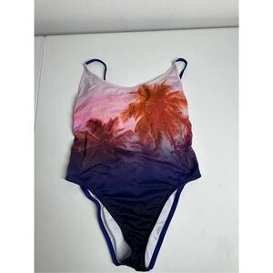 Victoria's Secret PINK High Leg One Piece Swimsuit Sunset Palm Tree Print L