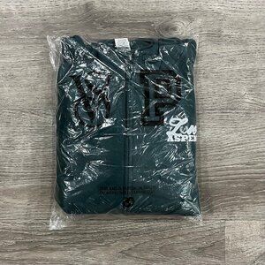 This item is a Victoria's Secret PINK Ivy Fleece Campus Full-Zip Hoodie in Deep Forest Aspen in Large (L). It is brand new and includes the original tags.