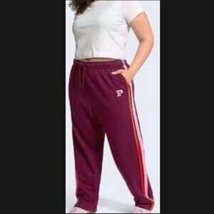 Victoria's Secret PINK Ivy Fleece Straight Leg Sweatpants Maroon Stripe XL NWT