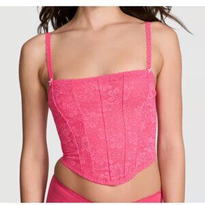 Victoria’s Secret PINK Lace Corset Camisole Crop Top XXL Hot Pink Y2K Bustier