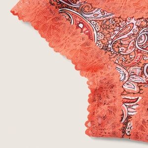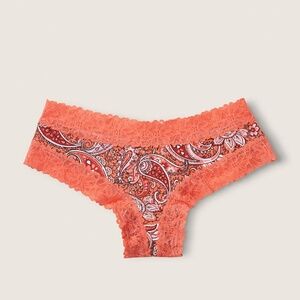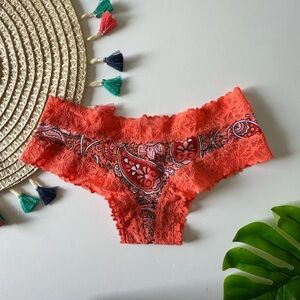 Victoria's Secret PINK Lace Trim Cheekster Panty Orange Paisley Small NEW