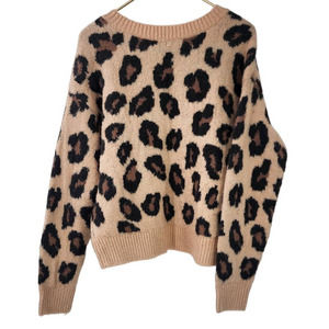 Victorias Secret PINK Leopard Print V-Back Soft Cozy Sweater Medium Reversible