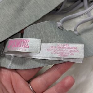 Women, Woman, Women's, Intimate, Intimates, Bralette, Bra, Strappy, Straps, VS, Victoria's Secret, PINK, Lilac Purple, Violet, Lilac, Pastel Purple, Silver, Grey, Triangle Bralette, Criss Cross Straps, Size Large, Size L, Lavender, Loungewear, RN 54867