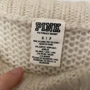 Victoria's Secret PINK Logo Cream Knit Sweater Size Small