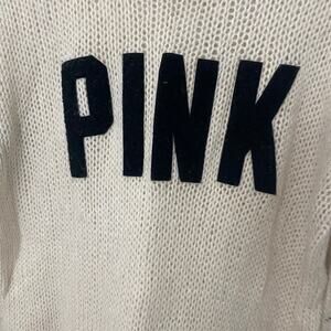 Victoria's Secret PINK Logo Cream Knit Sweater Size Small. Excellent condition. White cream color with black block lettering. Large logo on front. Knit material. Relaxed fit.