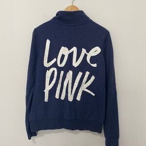 Victoria's Secret PINK Love Pink Blue Quarter Zip Sweatshirt Size Medium