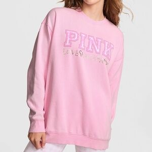 Victoria's Secret PINK Love Shack Fancy Oversized Crew Sweatshirt Pink L NEW