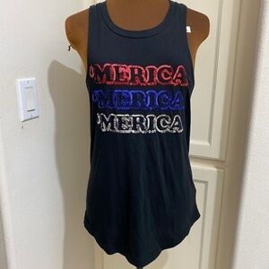 Victorias Secret PINK 4th Of July Tank with " 'Merica" sequin graphic in red, silver, and blue Size XS Tank Top has PINK logo on back.