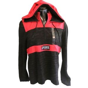 Victoria's Secret PINK Marble Grey w/ Neon Pink Anorak Campus Pullover Hoodie L