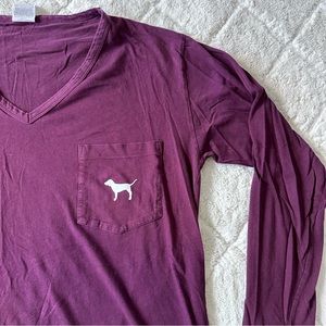 Victoria's Secret PINK | Maroon & White Long Sleeve Campus Tee | Size Medium