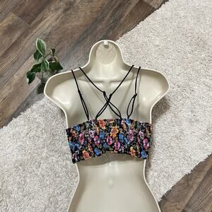 Victoria's Secret PINK Medium Black Vibrant Floral Lace Strappy Smocked Bralette