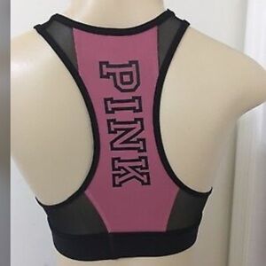 Like new, Victoria's Secret PINK Begonia Black Mesh High Neck Racerback Sports Bra size S, Unlined, no underwire.Color: Soft begonia, black.