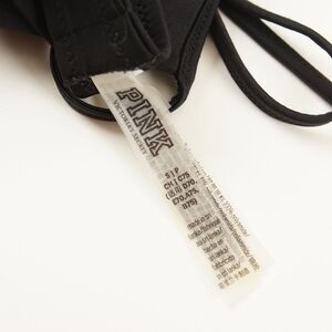 Victorias Secret PINK Midline ‘V’ Plunge Black/Rainbow Bikini Halter Top Women S
