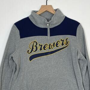 Victoria's Secret PINK Milwaukee Brewers Sweatshirt Women's Size Medium Gray Quarter Zip Pullover