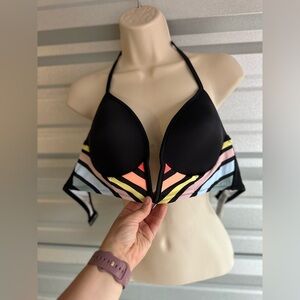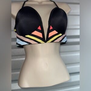 Victoria’s Secret PINK! Multi-Colored Plunge Bikini Top Size Large Like New