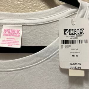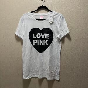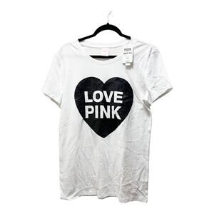 Victoria's Secret PINK Originals White Sparkle Heart Short Sleeve T-Shirt Size M