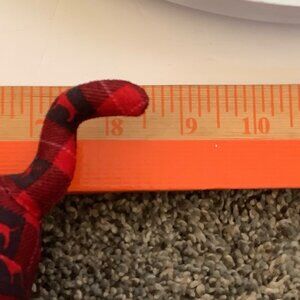 A charming plaid plush dog from Victoria's Secret PINK collection, crafted with care and attention to detail. This collectible piece adds a touch of whimsy and elegance to any setting, embodying quality and style with its vibrant red and black checkered design.