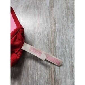 The Victoria's Secret PINK Pushup Bralette in deep red is a sexy and colorful piece with a floral lace overlay. This pullover bra features a racerback style and underwired support for a feminine and comfortable fit. Made from a polyamide blend with a lace fabric, it has adjustable straps, a V-neck design, and is washable for easy care. Perfect for everyday wear or special occasions, this bralette is a classic and stylish choice for women looking for a touch of angelic charm.