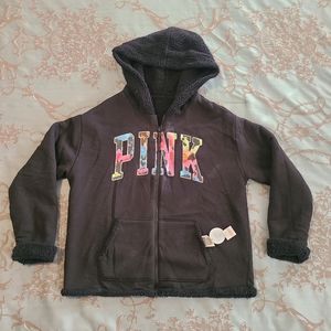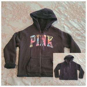 Victoria's Secret PINK Reversible Full Zip Sherpa Hoodie Jacket Women Size Small