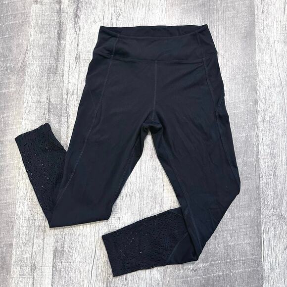 Victorias Secret PINK SPORT Black Yoga Legging Womens M Lace Ankle Mid Rise