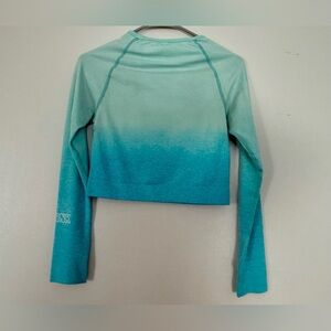 Victoria’s Secret PINK Seamless Cropped Workout Top M Blue Ombré Long Sleeve