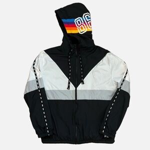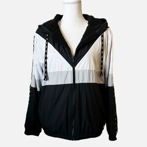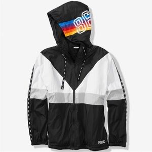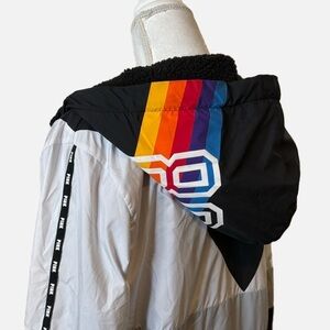 Victoria's Secret PINK Sherpa Lined Full Zip Anorak Hoodie Jacket Rainbow Logo