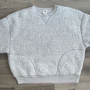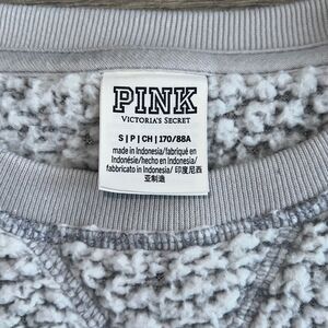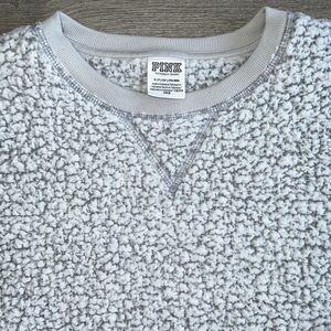 Victorias Secret PINK Sherpa Sweater Small Oversized Light Gray Cozy Loungewear