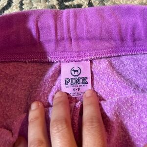 Experience ultimate comfort and style with these Victoria's Secret PINK athletic shorts. Crafted in a vibrant purple hue, they feature a relaxed fit and a convenient drawstring waist for a customizable fit. Perfect for workouts or casual wear, these shorts are a must-have addition to your activewear collection.