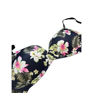 Victoria's Secret PINK Size 34DD Black Pink Flower Push-Up Bra
