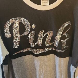 Victoria's Secret PINK Size L Bling Colorblock Campus Tee Long Sleeve