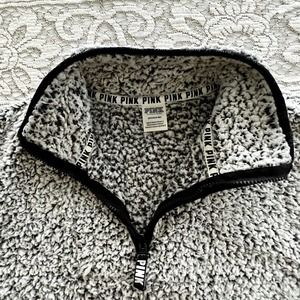 Victoria’s Secret PINK Size S Small Grey Sherpa Fleece 1/4 Zip Pullover Pocket