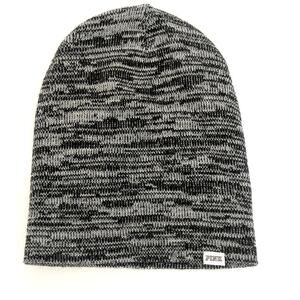 Victoria's Secret PINK Slouchy Beanie Hat Space Dyed Black Grey Winter Cap One Size