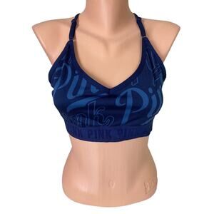 Victoria's Secret PINK Sport Bra Sz L Blue Strappy Back V-Neck