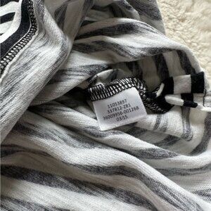 Details: Short sleeve tee. Printed classic dog emblem lower left side of the front. Allover stripe pattern, sleeves are solid black with white bands. Solid heather gray pocket on the front bust. Slightly oversized fit, see photos for flat lay measurements.