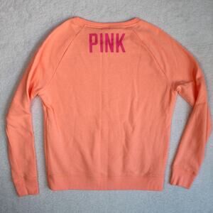 Victoria’s Secret PINK sweatshirt in neon orange coral color with a bold sequin Statue of Liberty graphic and “New York” script. Women’s Medium. Soft cotton blend fleece with long sleeves, crew neckline, and “PINK” logo on the back.