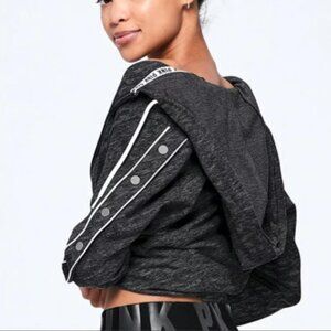 Y2K Pink by Victoria's Secret Full Zip Hoodie with Functional Snap Button Detail Sleeves. Cozy and trendy, soft marled gray fabric, full zip-up with a hood and drawstring