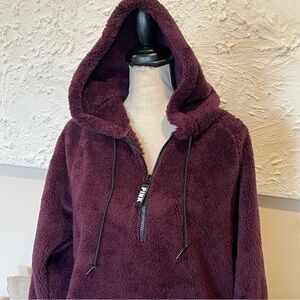 Victoria’s Secret PINK Teddy Half Zip Hoodie Medium, Luscious Plum Sold Out New