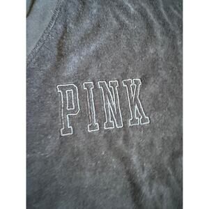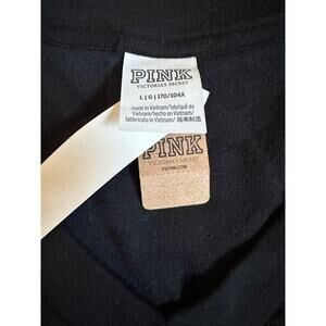A lightweight, yet warming long sleeve sweater from the Victoria's Secret PINK line. This v-neck top is of a black terry material and has the PINK logo on the front left chest. Absolutely perfect for transitional weather.