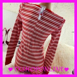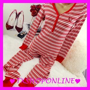💗👙Victoria's Secret PINK Thermal Long Onesie Bright Vermillion Stripes 👙💗