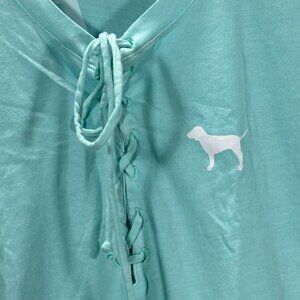 Victorias Secret PINK Top Womens XS Blue Lace Up Neck Tee Short Sleeve Split Hem