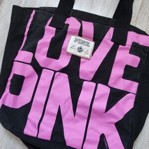 Victoria's Secret PINK Tote Bag Canvas Black Purple 'Love Pink' Logo Large Size