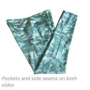 Victoria’s Secret Ultimate ACTIVE Leggings in bold sea green camo. Full-length with a high-rise waist and contour seams for a flattering, supportive fit. Each side has a pocket and there is a small pocket on the interior waistband. Made from moisture wicking, stretch fabric ideal for workouts or athleisure.