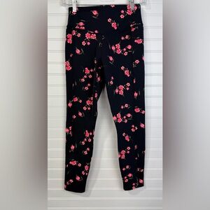 Victoria’s Secret PINK Ultimate black and pink floral leggings. Size small. Cropped. Has small side pockets. EUC