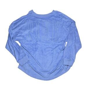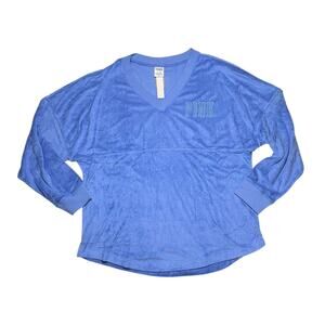 Victoria's Secret PINK Varsity Beach Terry V Neck Top Blue Dawn Size Large