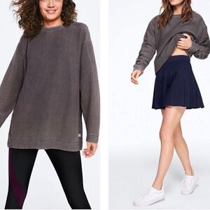 Victoria's Secret PINK Washed Campus Ribbed Crewneck Long Sleeve Pullover XS