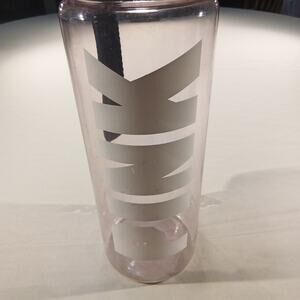 Victoria’s Secret PINK logo water bottle featuring a sleek light pink body with bold white logo and black flip-top lid.